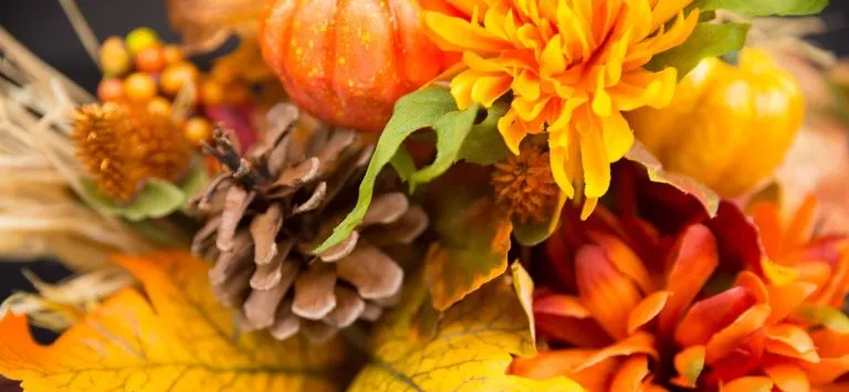 Die Farben des Herbstes im Baum, in den Blumen und Weinreben
