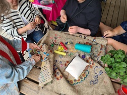 Textiles Gestalten – gemeinschaftliches Sticken am Freitagnachmittag